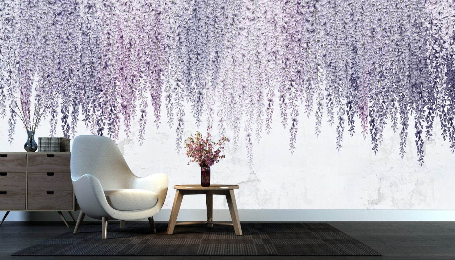 For a softer, more harmonious palette, look toward analogous colors like true blues and pinks. Mint green is another excellent companion, as it mirrors the natural pairing of the wisteria blossom and its leaves.