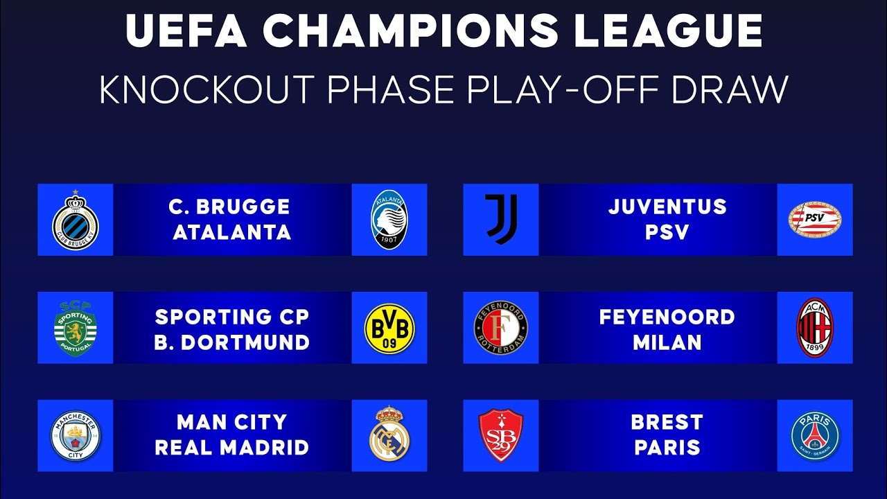 Explore this high-quality champions league knockout play-off draw in full image, perfect for enhancing your desktop or mobile wallpaper.